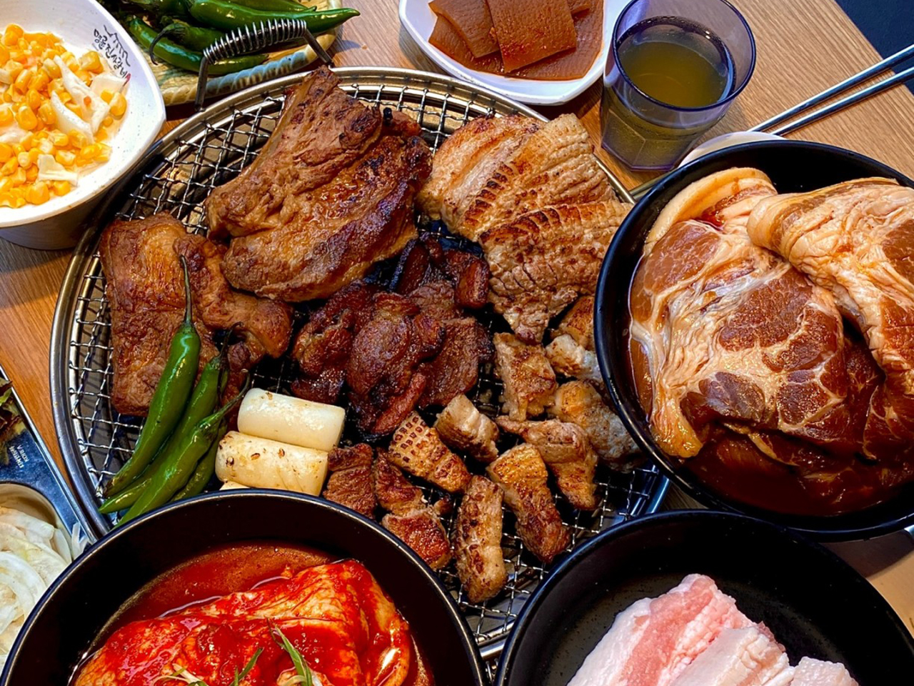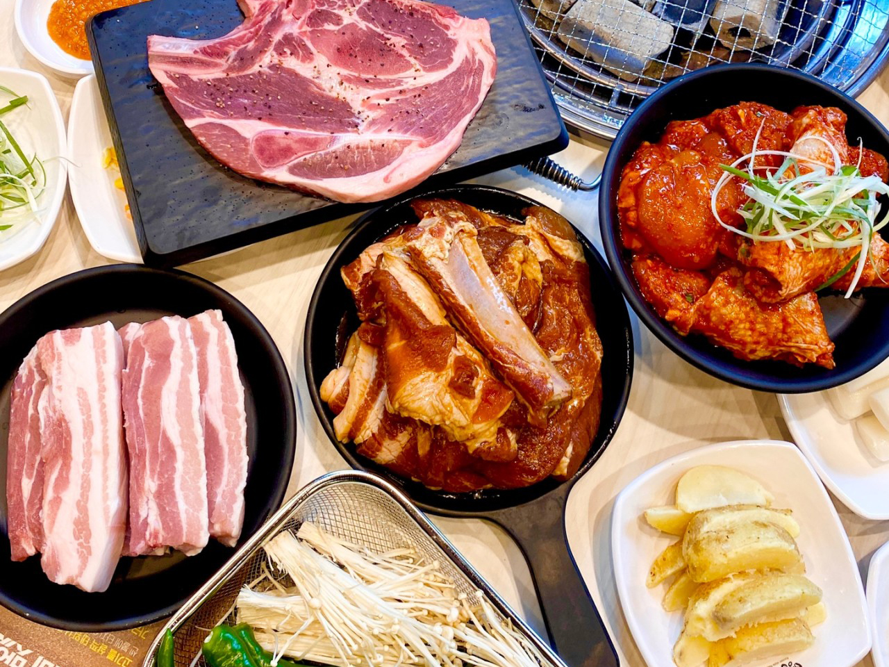 숯불돼지갈비+통삼겹살+숯불닭갈비+돼지껍데기+등갈비 프렌치렉+목살까지